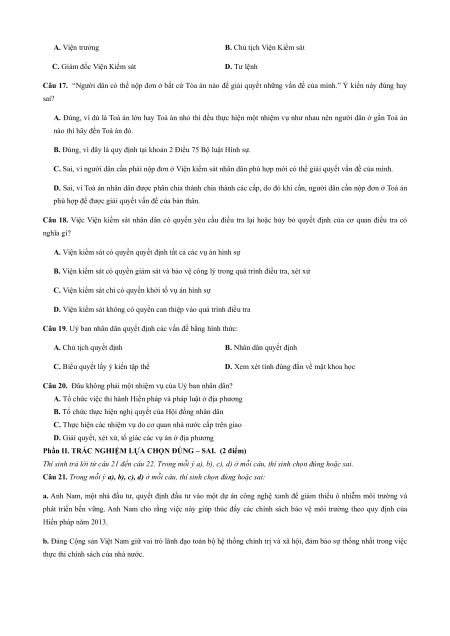 4. Tòa án nhân dân và Viện kiểm 2 1/2 1/2 (0,5 sát nhân dân (0,5 đ) (0,25đ) (0,75đ) đ) 2