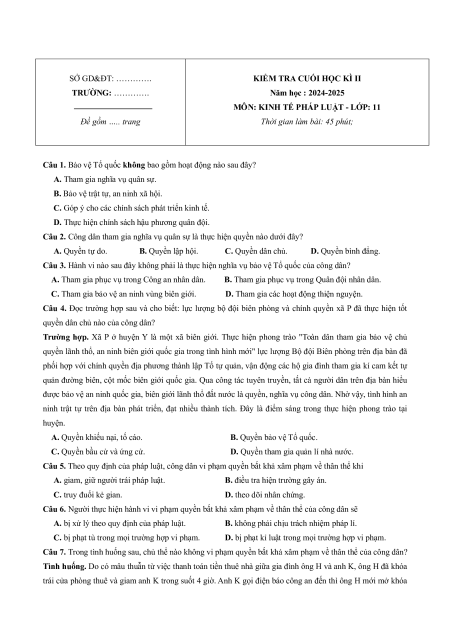 MÔN: KINH TẾ PHÁP LUẬT - LỚP: 11 Đề gồm …. trang