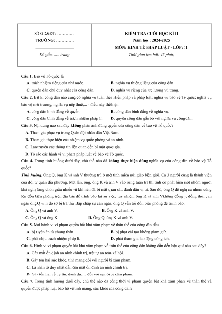 MÔN: KINH TẾ PHÁP LUẬT - LỚP: 11 Đề gồm …. trang