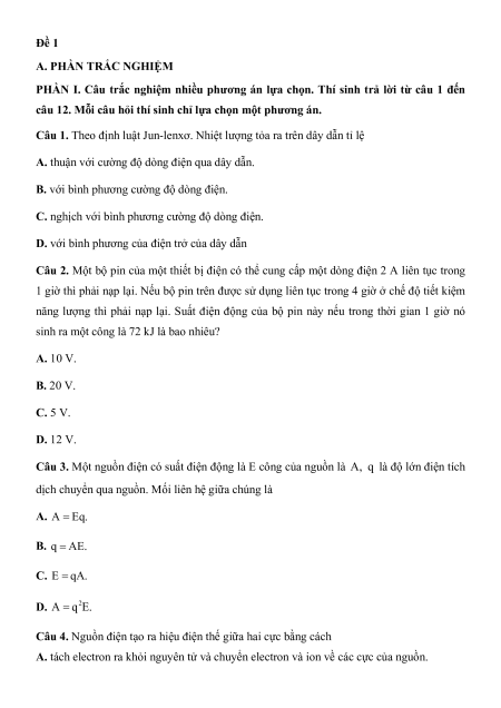 Đề 1 A. PHẦN TRẮC NGHIỆM
