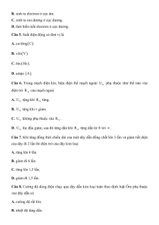 Câu 8. Cường độ dòng điện chạy qua dây dẫn kim loại tuân theo định luật Ôm phụ thuộc vào dây dẫn có