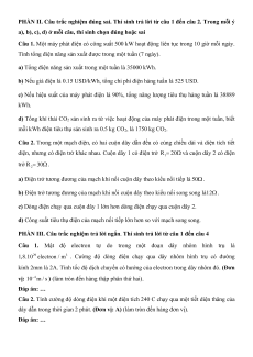 Câu 1. Một máy phát điện có công suất 500 kW hoạt động liên tục trong 10 giờ mỗi ngày.