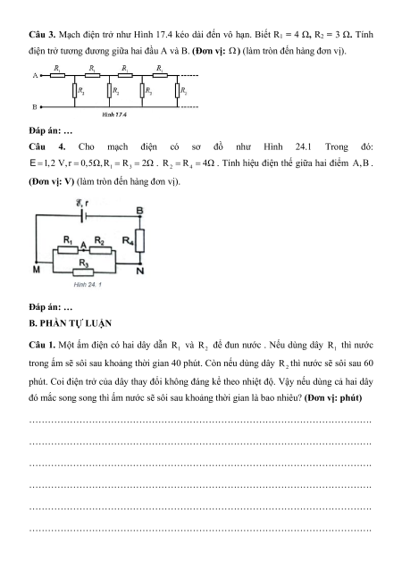 Câu 7. Khi tăng đồng thời chiều dài của một dây dẫn đồng chất lên 3 lần và giảm tiết diện