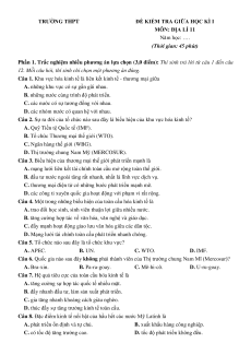 ĐỀ KIỂM TRA GIỮA HỌC KÌ I MÔN: ĐỊA LÍ 11 Năm học: ….