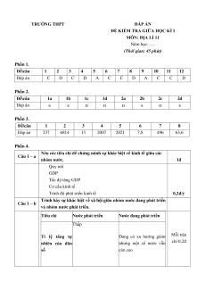 Câu 2 (1 điểm). Tại sao nhóm nước đang phát triển có chỉ số HDI thấp hơn nhóm nước phát triển? TRƯỜNG THPT ĐÁP ÁN