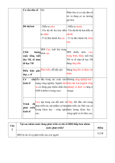 Câu 1 – b và nhóm nước phát triển. Tiêu chí Nước phát triển