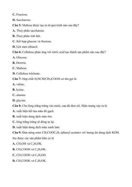 Câu 4: Carbohydrate nào sau đây thuộc loại disaccharide? A. Glucose. B. Tinh bột.