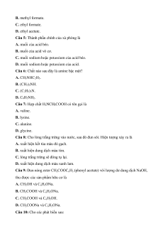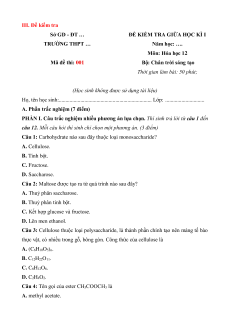 Câu 1: Carbohydrate nào sau đây thuộc loại monosaccharide? A. Cellulose. B. Tinh bột. C. Fructose. D. Saccharose.
