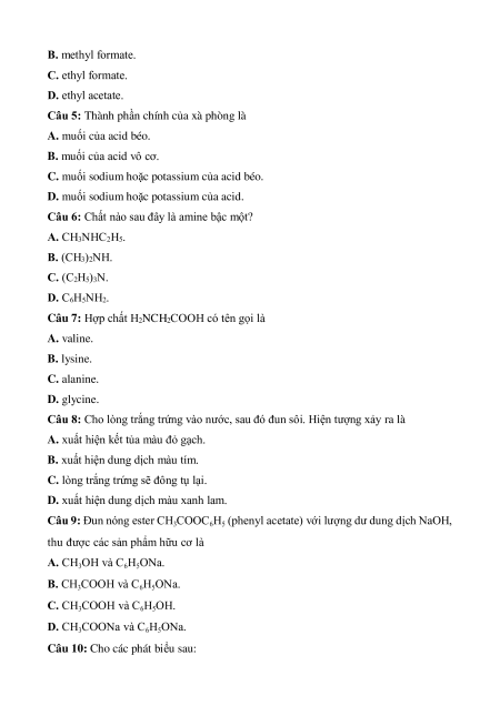 Câu 4: Tên gọi của ester CH3COOCH3 là