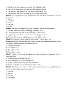 Câu 15: Tình trạng người lao động mong muốn có việc làm nhưng chưa tìm được việc làm được gọi là A. thất nghiệp. B. sa thải. C. giải nghệ. D. bỏ việc.