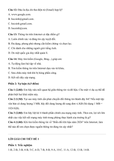 Câu 12: Đâu là địa chỉ thư điện tử (Email) hợp lệ? A. www.google.com. B. hocsinh@gmail.com. C. hocsinh.gmail.com. D. hocsinh@com.
