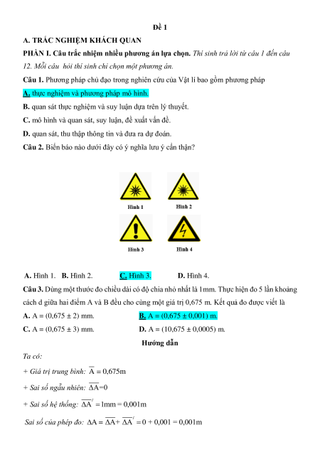 Câu 1. Phương pháp chủ đạo trong nghiên cứu của Vật lí bao gồm phương pháp
