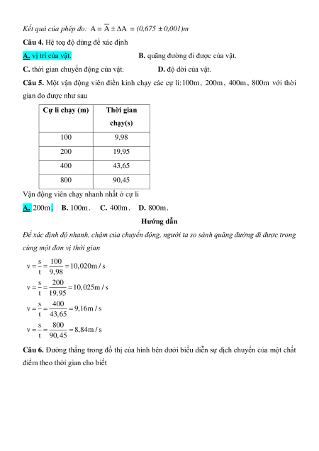 Câu 6. Đường thẳng trong đồ thị của hình bên dưới biểu diễn sự dịch chuyển của một chất