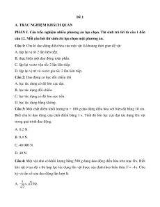 Câu 1: Chu kì dao động điều hòa của một vật là khoảng thời gian để vật