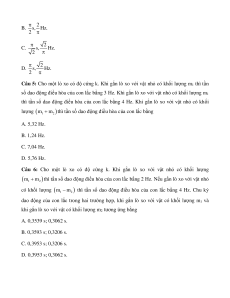 Câu 5: Cho một lò xo có độ cứng k. Khi gắn lò xo với vật nhỏ có khối lượng m1 thì tần