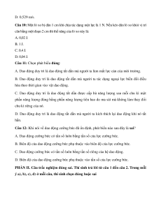 Câu 9: Một con lắc đơn lý tưởng có độ dài dây treo bằng 20 cm, treo tại nơi có gia tốc