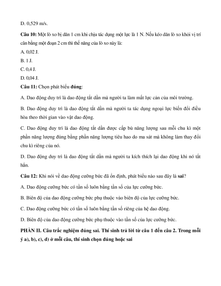 Câu 12: Khi nói về dao động cưỡng bức đã ổn định, phát biểu nào sau đây là sai?