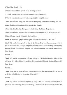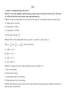 Câu 1: Trong dao động điều hòa của một vật thì gia tốc và li độ biến thiên theo thời gian: A. Ngược pha với nhau. B. Cùng pha với nhau. C. Vuông pha với nhau. D. Lệch pha một góc . 4