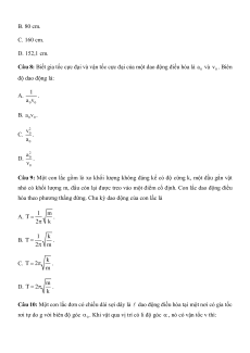 Câu 10: Một con lắc đơn có chiều dài sợi dây là dao động điều hòa tại một nơi có gia tốc