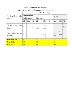 MA TRẬN ĐỀ KIỂM TRA GIỮA KÌ 2