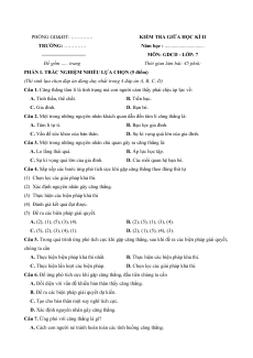 Năm học : . . . . . . . . . . . . . . . . MÔN: GDCD - LỚP: 7 Đề gồm …. trang