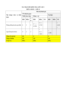 MA TRẬN ĐỀ KIỂM TRA GIỮA KÌ 2 MÔN: GDCD – LỚP: 8 Mức độ đánh giá TN khách quan