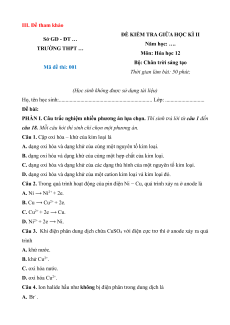 ĐỀ KIỂM TRA GIỮA HỌC KÌ II Sở GD - ĐT … Năm học: …. TRƯỜNG THPT … Môn: Hóa học 12
