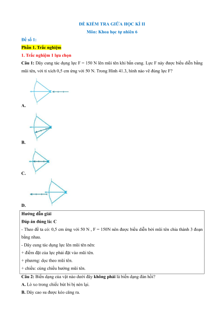 Câu 1: Dây cung tác dụng lực F = 150 N lên mũi tên khi bắn cung. Lực F này được biểu diễn bằng