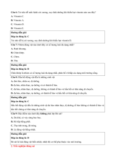 Câu 6: Trẻ nhỏ dễ mắc bệnh còi xương, suy dinh dưỡng khi thiếu hụt vitamin nào sau đây? A. Vitamin C. B. Vitamin A. C. Vitamin D. D. Vitamin E. Hướng dẫn giải Đáp án đúng là: C