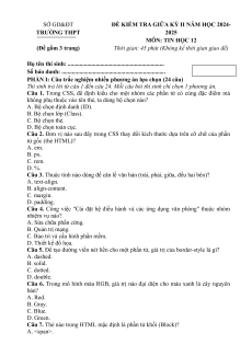 ĐỀ KIỂM TRA GIỮA KỲ II NĂM HỌC 2024- TRƯỜNG THPT 2025 MÔN: TIN HỌC 12 (Đề gồm 3 trang)