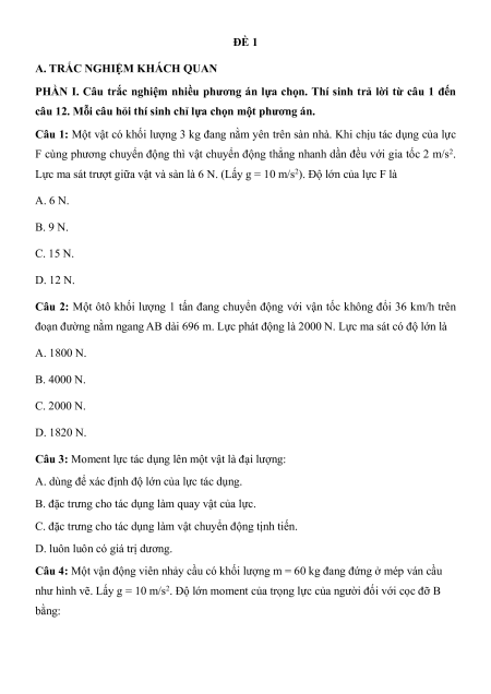 Câu 1: Một vật có khối lượng 3 kg đang nằm yên trên sàn nhà. Khi chịu tác dụng của lực