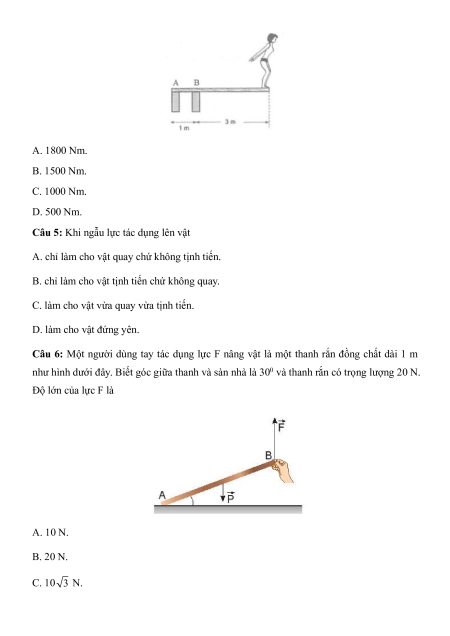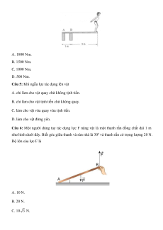 Câu 6: Một người dùng tay tác dụng lực F nâng vật là một thanh rắn đồng chất dài 1 m