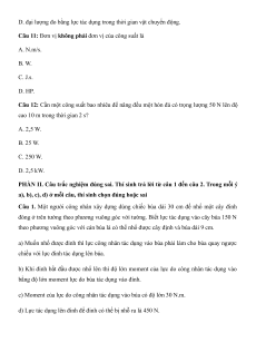 Câu 3: Moment lực tác dụng lên một vật là đại lượng: