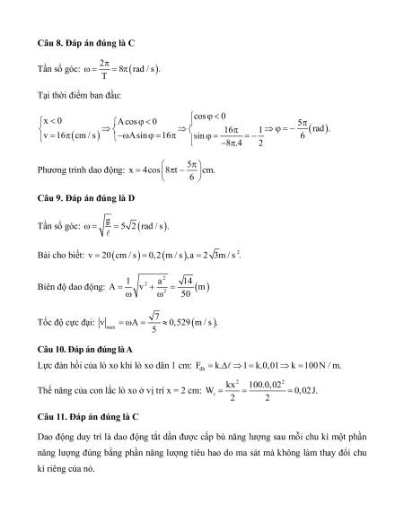 Câu 3: Một chất điểm khối lượng m = 100 g dao động điều hòa với biên độ bằng 10 cm.