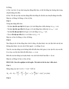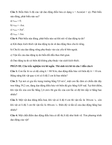 Câu 1: Chu kì dao động điều hòa của một vật là khoảng thời gian để vật