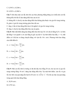Câu 9: Một con lắc đơn lý tưởng có độ dài dây treo bằng 20 cm, treo tại nơi có gia tốc