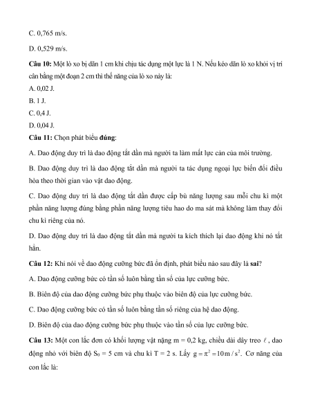 Câu 12: Khi nói về dao động cưỡng bức đã ổn định, phát biểu nào sau đây là sai?
