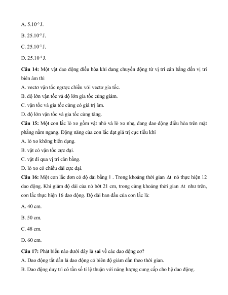 Câu 7: Khi đưa một con lắc đơn lên cao theo phương thẳng đứng (coi chiều dài con lắc