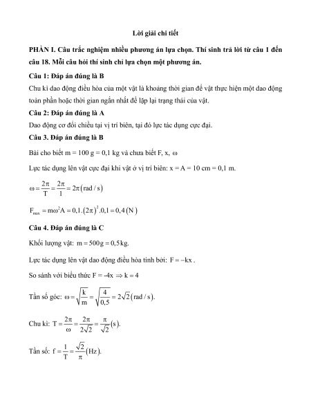 PHẦN I. Câu trắc nghiệm nhiều phương án lựa chọn. Thí sinh trả lời từ câu 1 đến
