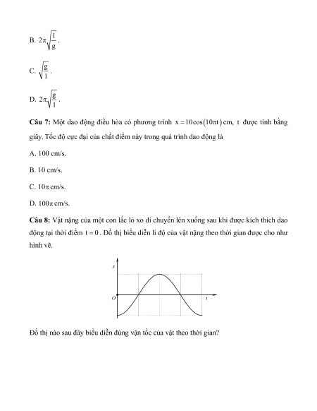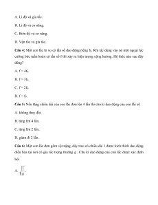 Câu 6: Một con lắc đơn gồm vật nặng, dây treo có chiều dài l được kích thích dao động