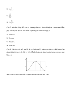Câu 2: Cho dao động điều hòa với phương trình vận tốc v v cos t . Biên độ của 0 dao động này là A. v . 0 B. v . 0 C. v0 . D. . v0