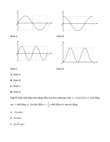 Đồ thị nào sau đây biểu diễn đúng vận tốc của vật theo thời gian? v v O t O t Hình A Hình B v v O t O t Hình C Hình D A. Hình A. B. Hình B. C. Hình C. D. Hình D.