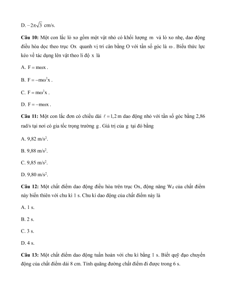 giây. Tốc độ cực đại của chất điểm này trong quá trình dao động là A. 100 cm/s. B. 10 cm/s. C. 10 cm/s. D. 100 cm/s.