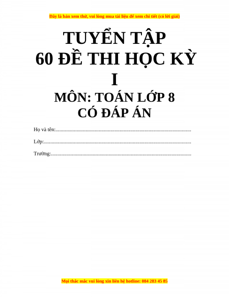 60 ĐỀ THI HỌC KỲ I MÔN: TOÁN LỚP 8 CÓ ĐÁP ÁN