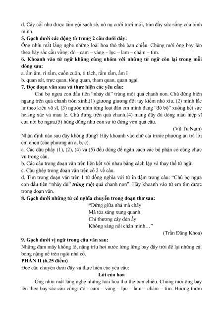 Đọc câu chuyện dưới đây và thực hiện các yêu cầu: Lời của hoa