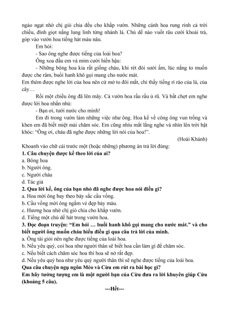 1. Câu chuyện được kể theo lời của ai? a. Bông hoa b. Người ông. c. Người cháu d. Tác giả