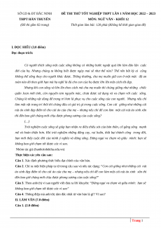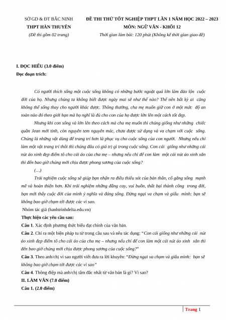 + Đề thi thử THPT Quốc Gia Ngữ văn năm 2023 trường THPT Hàn Thuyên - Bắc Ninh.