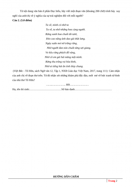 Họ, tên thí sinh:………………………………Số báo danh…………………………………… HƯỚNG DẪN CHẤM Trang 2