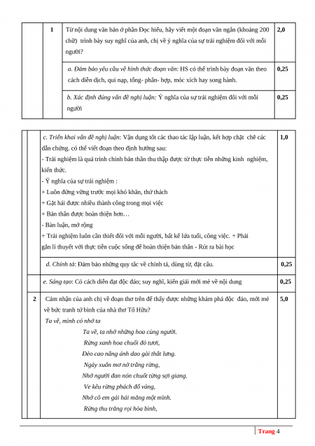 e. Sáng tạo: Có cách diễn đạt độc đáo; suy nghĩ, kiến giải mới mẻ về nội dung 0,25 2