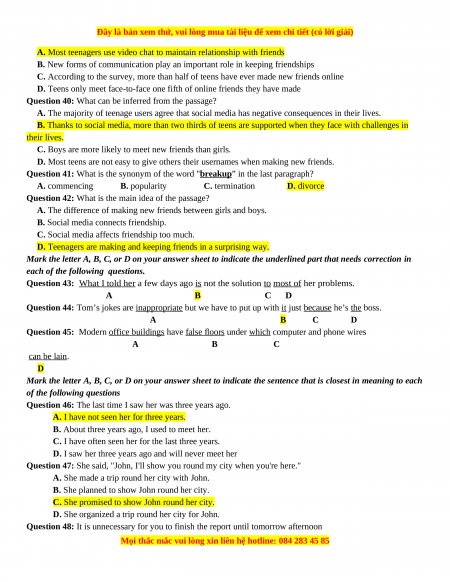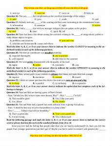 Bài thi: NGOẠI NGỮ; Môn thi: TIẾNG ANH
